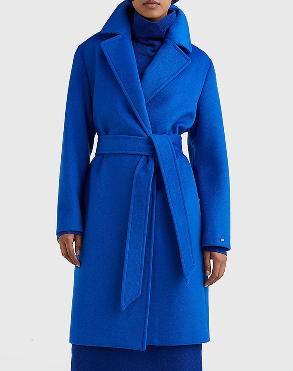 Γυναικείο παλτό σε κανονική γραμμή, με γιακά με πέτο, τσέπες στο πλάι και θηλιές και ζώνη στη μέση. ( Σύνθεση: 60% Πολυεστέρας, 40% Μαλλί )