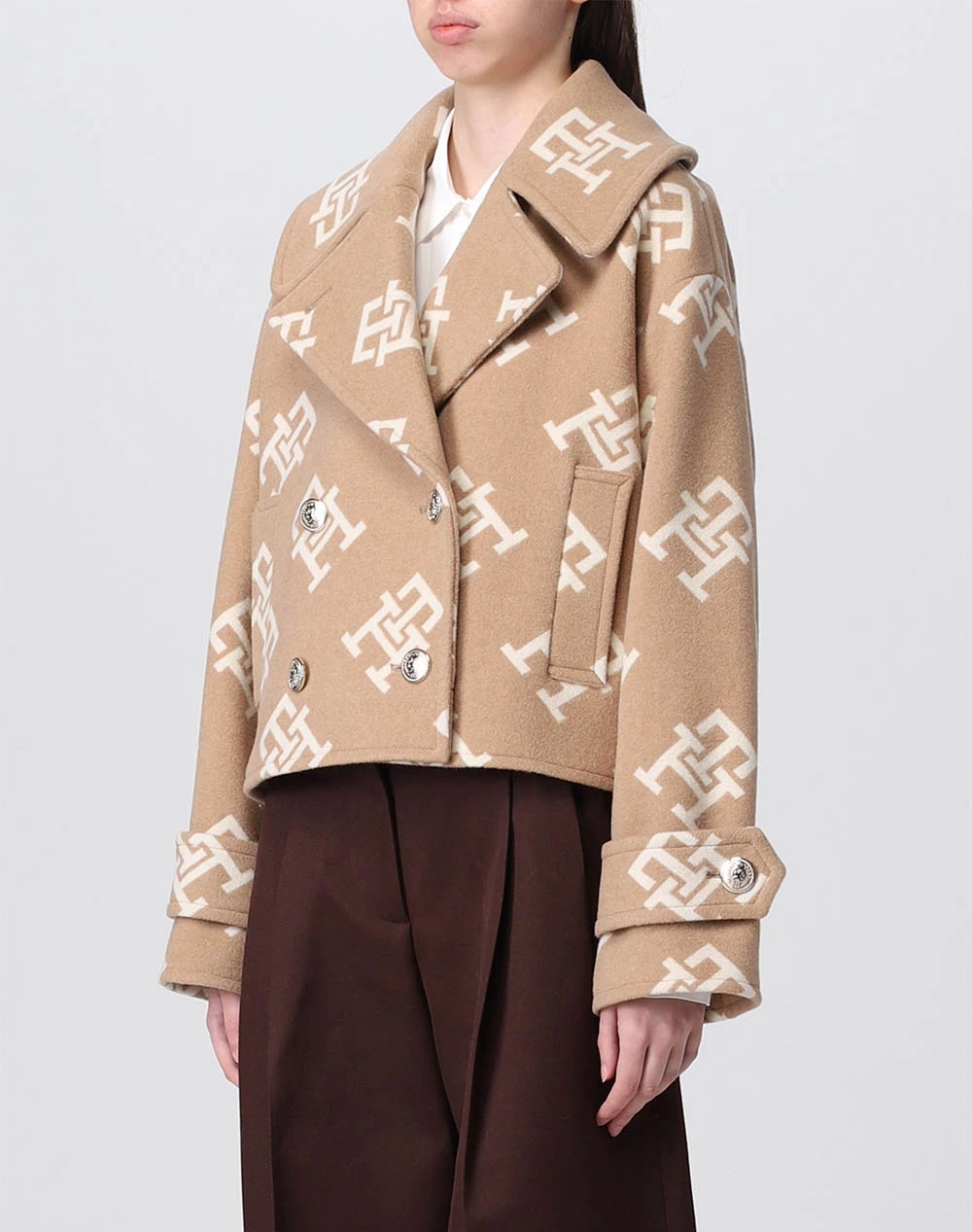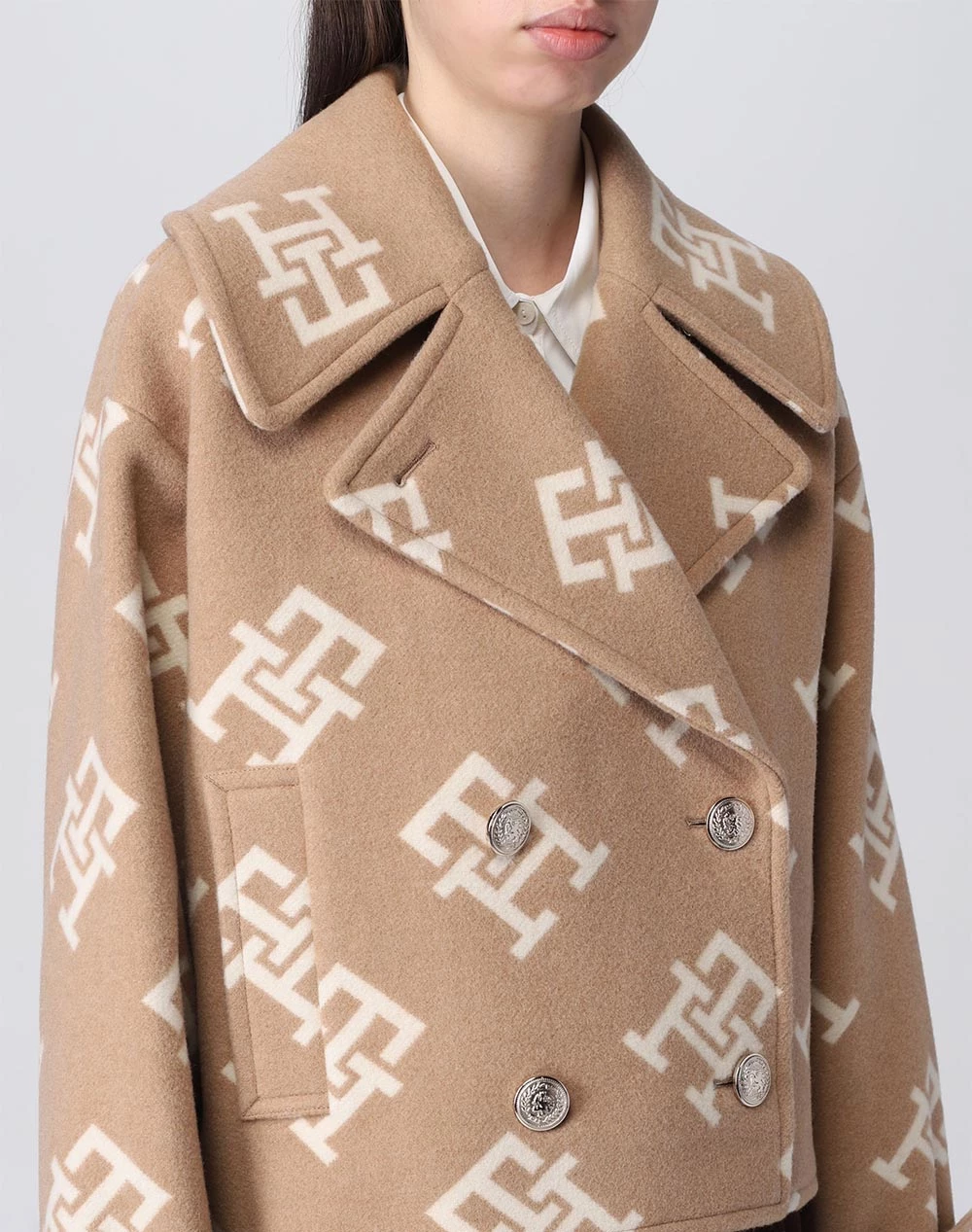 Γυναικείο παλτό cropped σε κανονική γραμμή, με τσέπες στο πλάι και κλείσιμο με κουμπιά. ( Σύνθεση: Μαλλί, Κασμίρ )