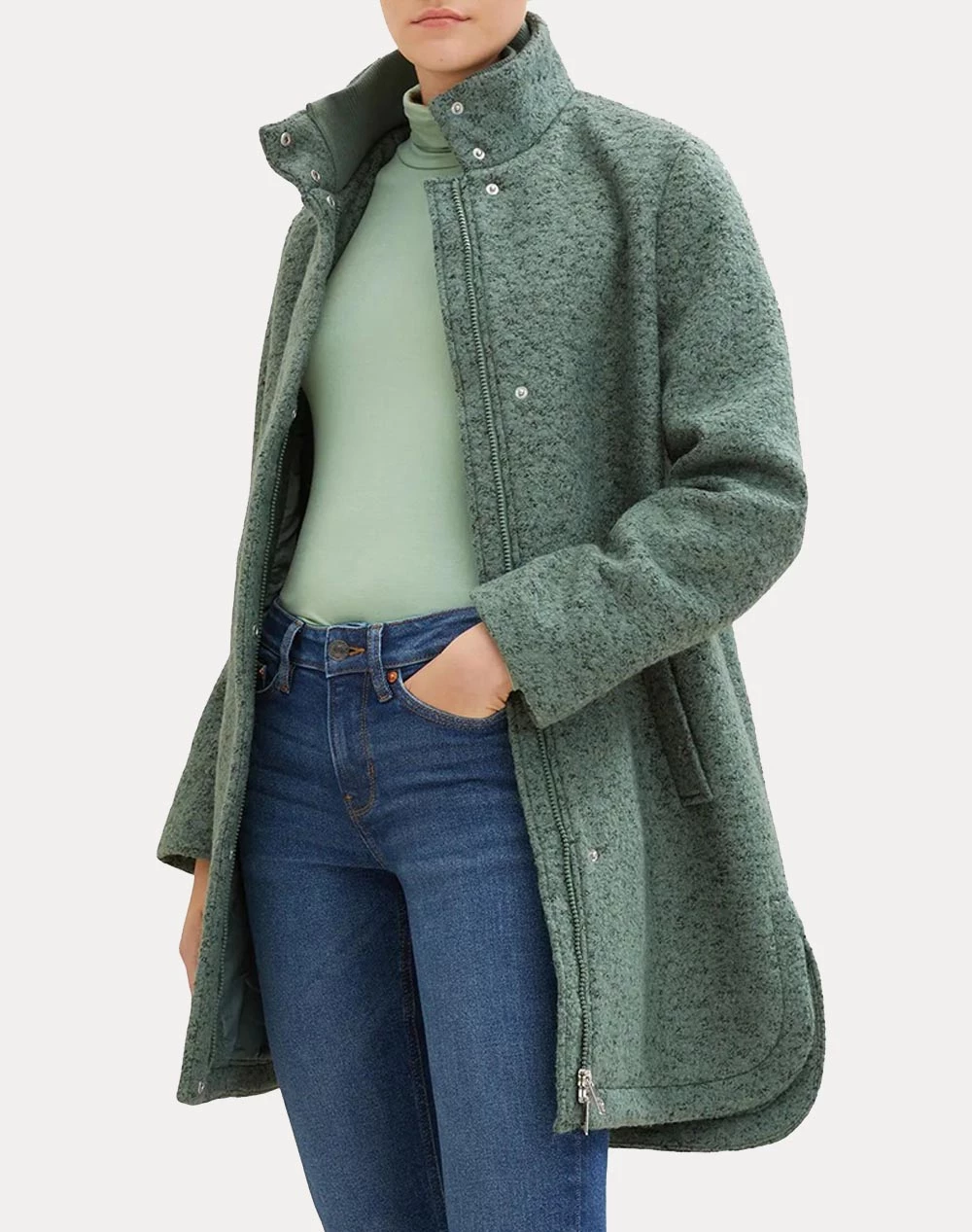 Γυναικείο παλτό σε κανονική γραμμή, με τσέπες στο πλάι, κλείσιμο με φερμουάρ και με κουμπιά. ( Σύνθεση: Συνθετικό )