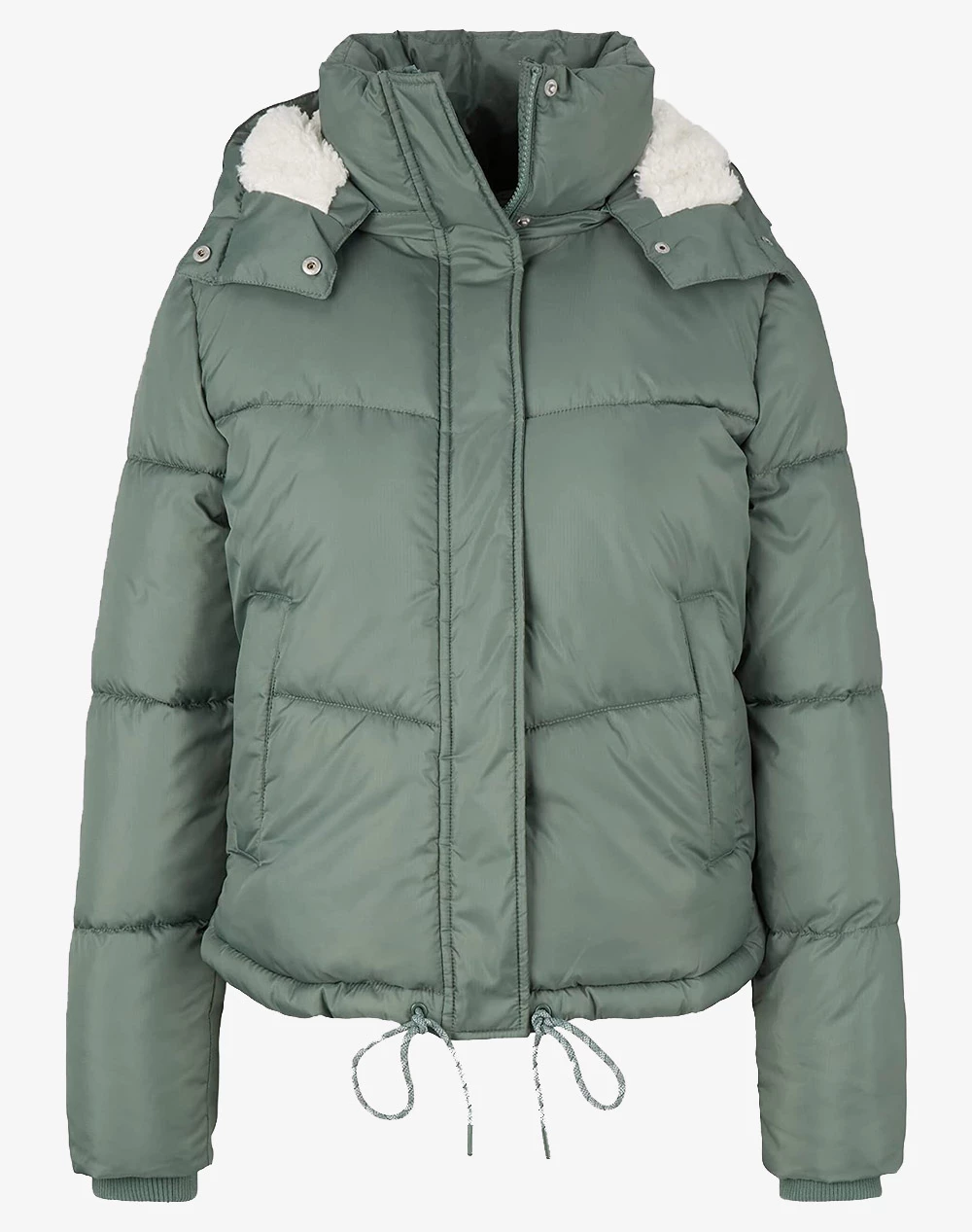 Γυναικείο μπουφάν τύπου puffer σε κανονική γραμμή, με κουκούλα με γούνα, τσέπες στο πλάι και κλείσιμο με φερμουάρ. ( Σύνθεση: 100% Πολυεστέρας )