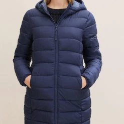 Γυναικείο μακρύ μπουφάν τύπου puffer σε κανονική γραμμή, με κουκούλα, τσέπες στο πλάι και κλείσιμο με φερμουάρ. ( Σύνθεση: 100% Πολυεστέρας )