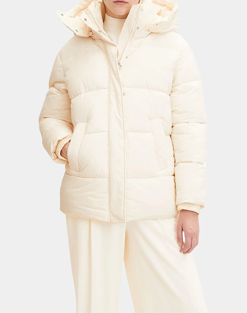 Γυναικείο μπουφάν τύπου puffer σε κανονικη γραμμή, με αφαιρούμενη κουκούλα, τσέπες στο πλάι και κλείσιμο με φερμουάρ. ( Σύνθεση: Συνθετικό )