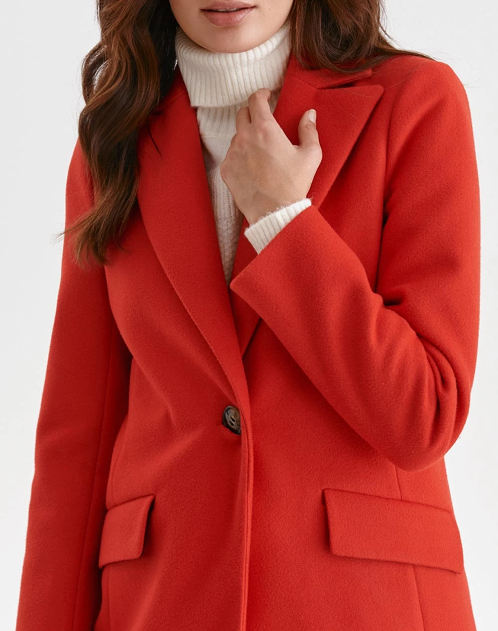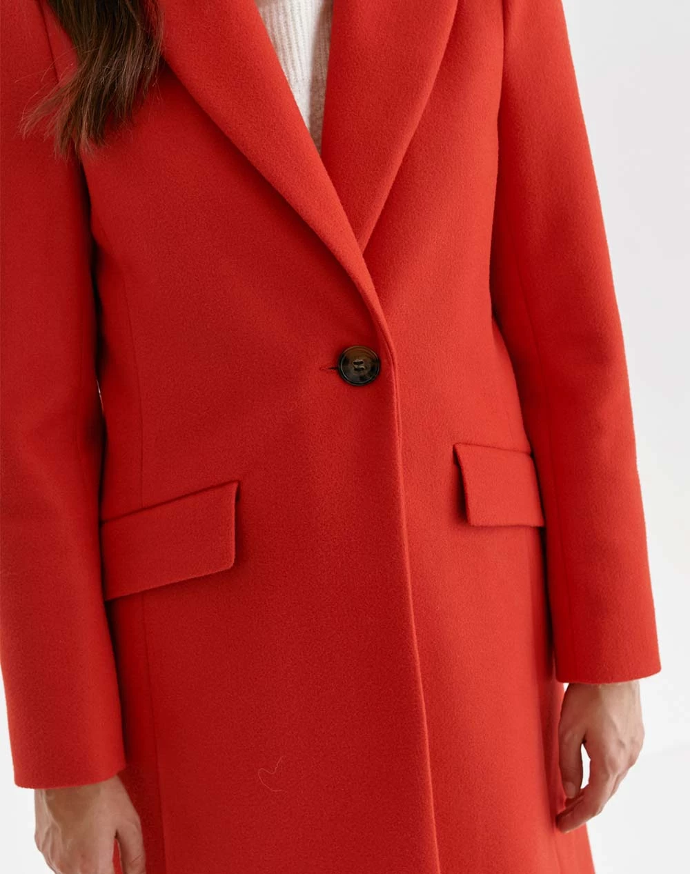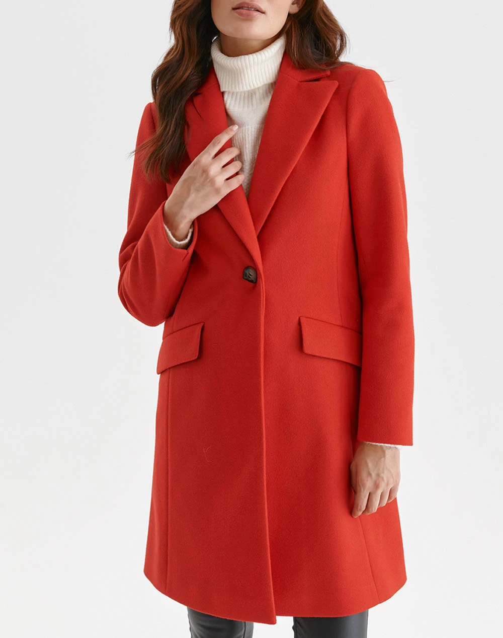 Παλτό μονόχρωμο με κλασσικό γιακά, μονόκουμπο, με τσέπες στο πλάϊ και άνοιγμα στη πίσω όψη. (Σύνθεση: 100% Πολυεστέρας)