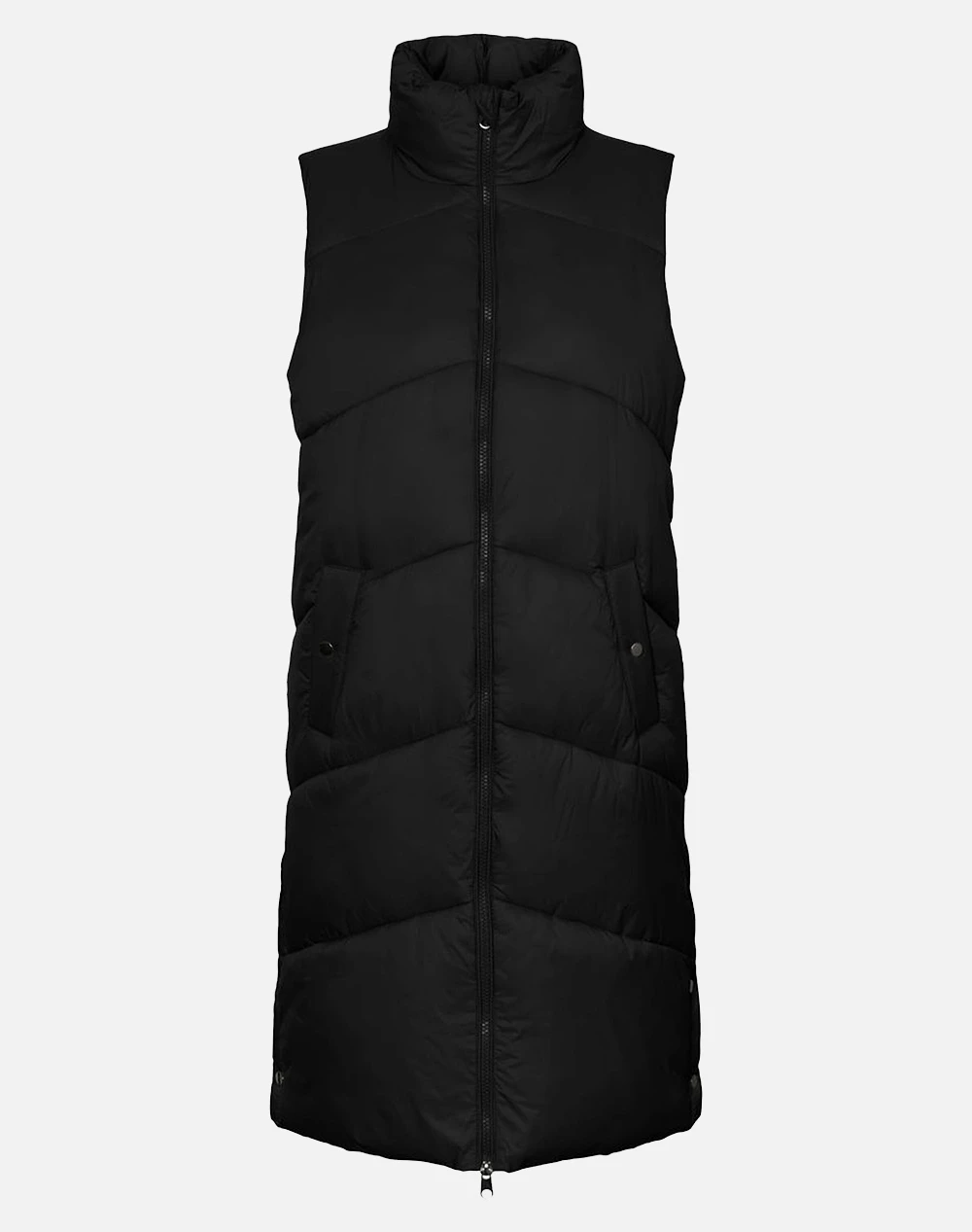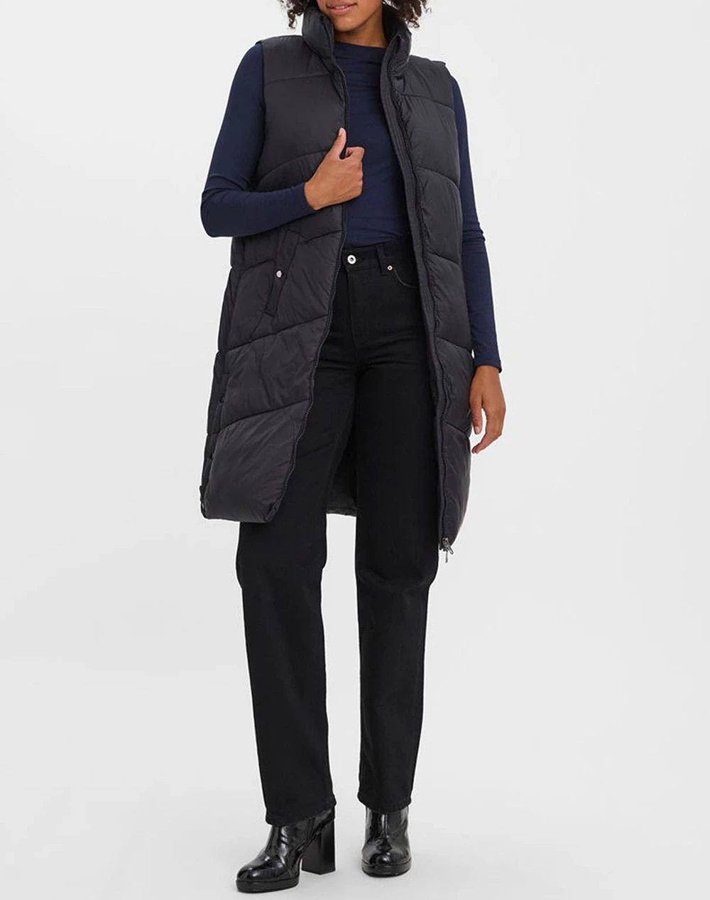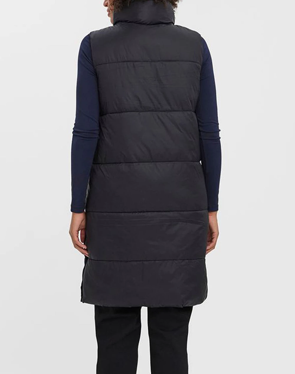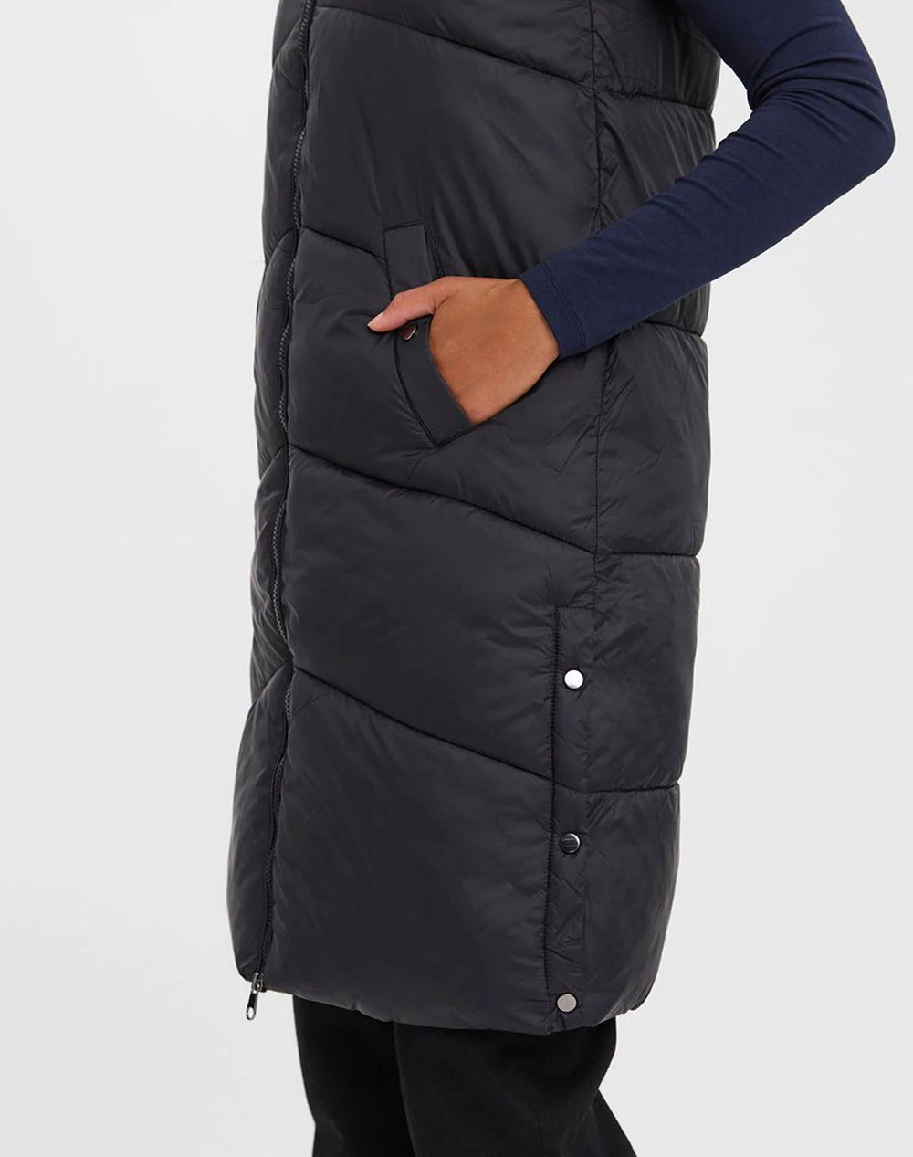 Γυναικείο μακρύ μπουφάν puffer αμάνικο, με τσέπες στο πλάι και κλέισιμο με φερμουάρ διπλής κατευθυνσης. ( Σύνθεση: Πολυεστέρας )