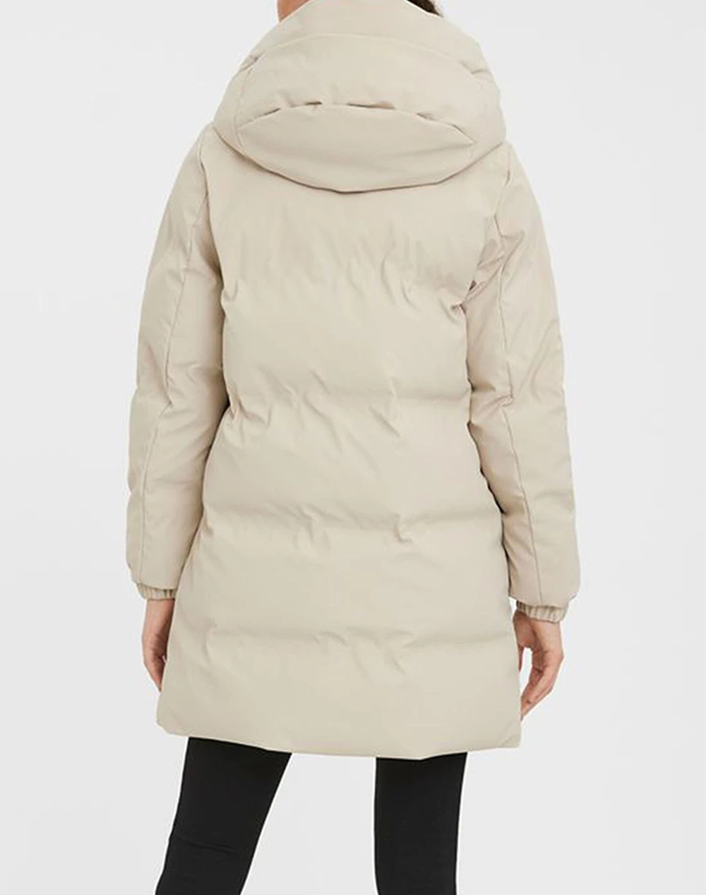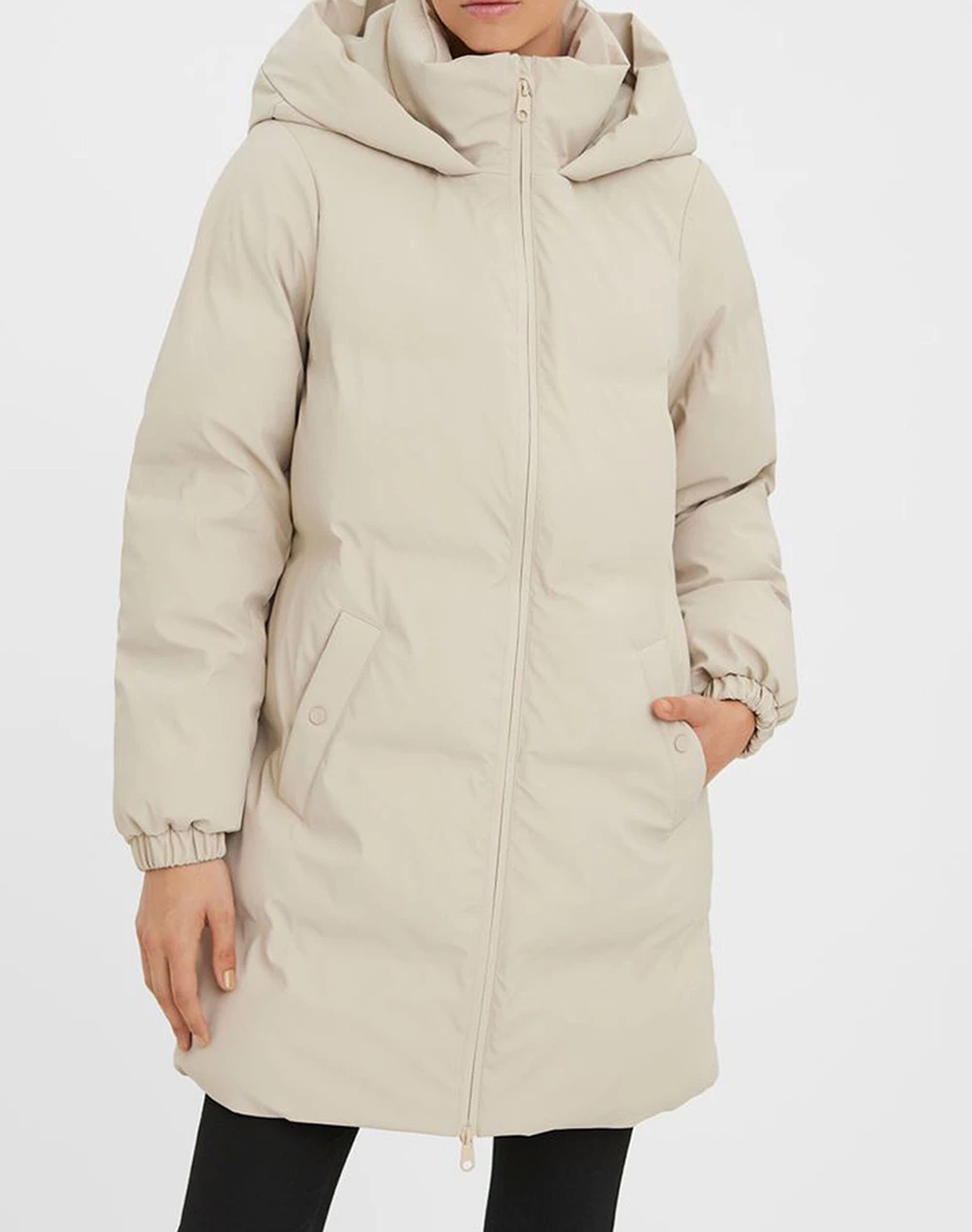 Γυναικείο μπουφάν τύπου puffer σε κανονική γραμμή, με κουκούλα, τσέπες στο πλάι, και κλείσιμο με φερμουάρ. ( Σύνθεση: 100% Πολυεστέρας )