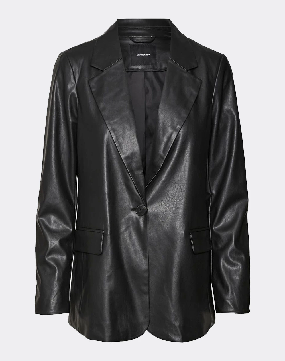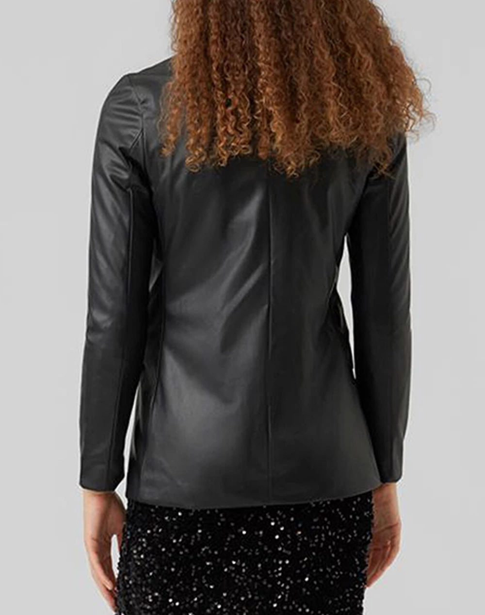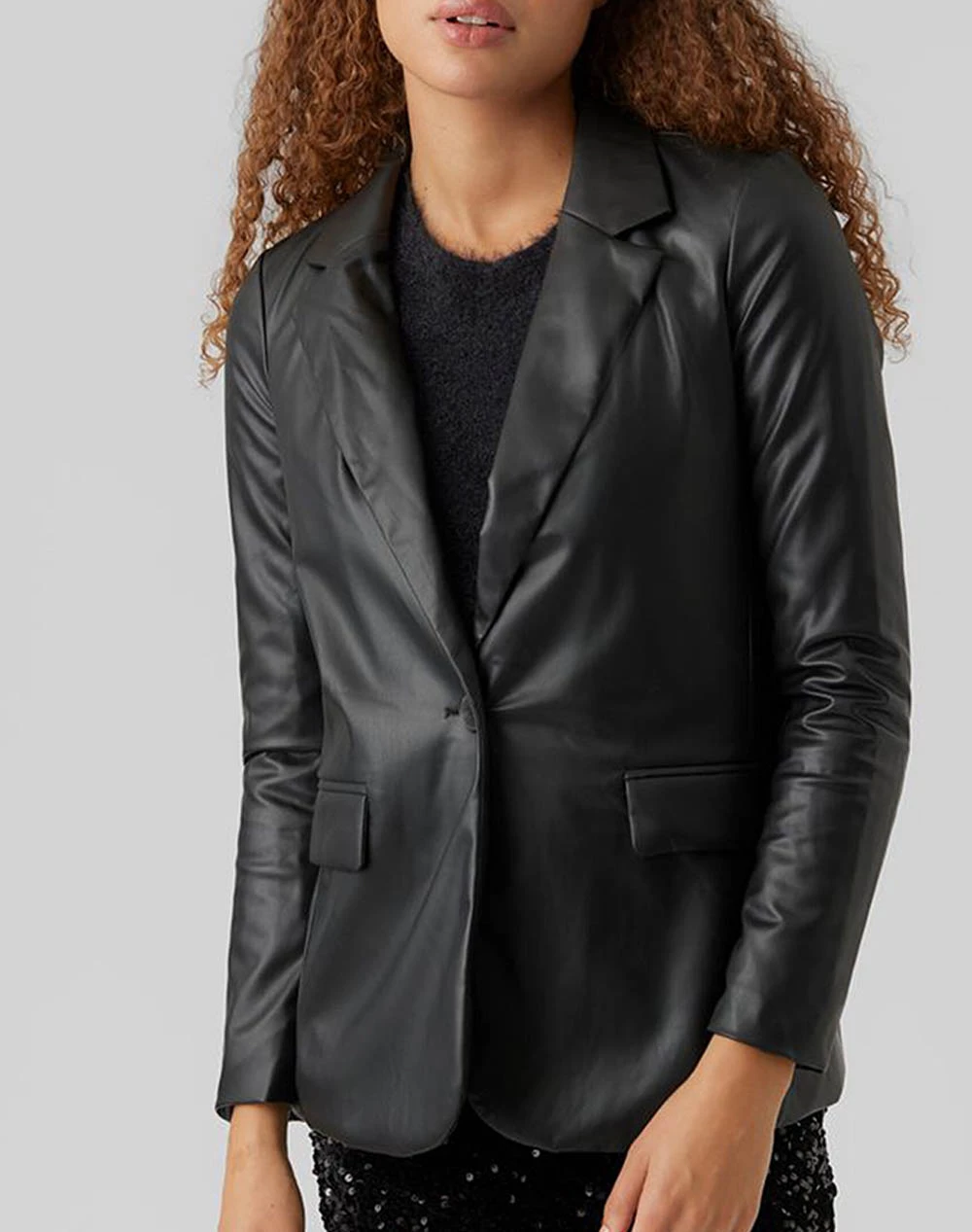 Γυναικείο δερμάτινο τζάκετ σε κανονικξή γραμμή, με τσέπες στο πλάι και κλείσιμο με κουμπιά. ( Σύνθεση: Δέρμα )