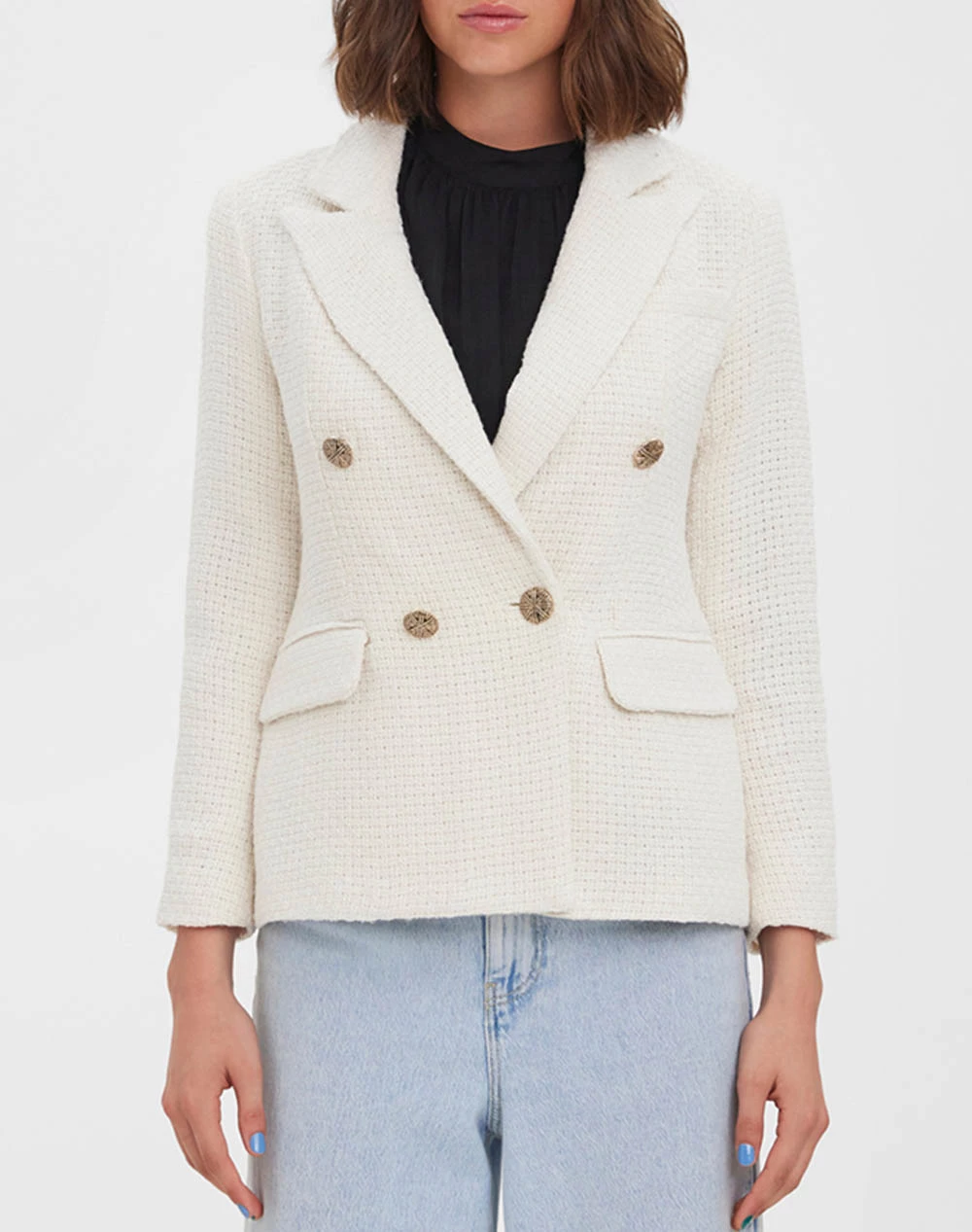 Γυναικείο πλεκτό σακάκι τύπου blazer σε στενή γραμμή, με κλείσιμο με κουμπιά. ( Σύνθεση: 100% Πολυεστέρας )