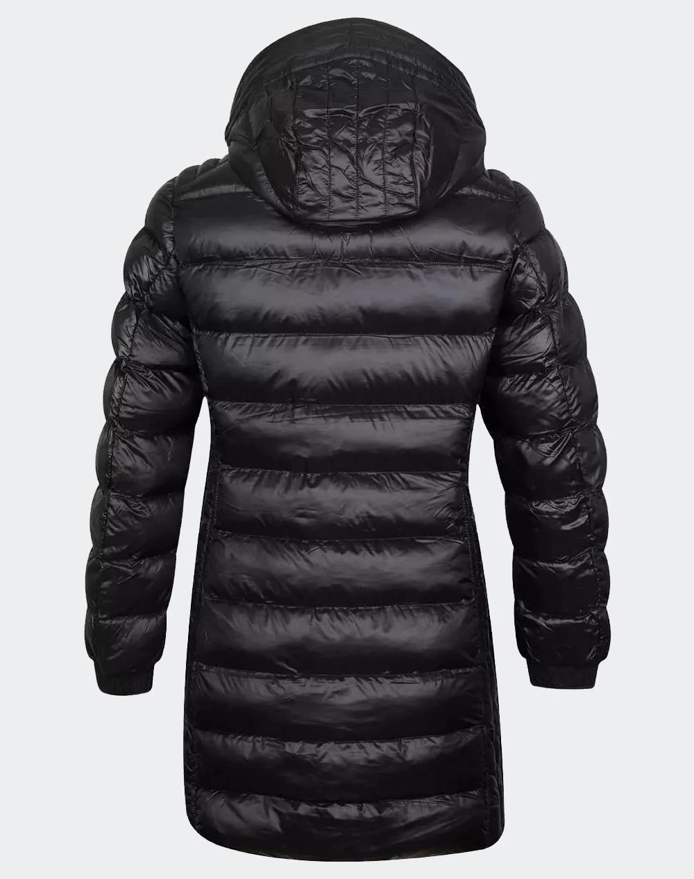 Γυναικείο μακρύ μπουφάν τύπου Puffer σε κανονική γραμμή, με κουκούλα, τσέπες στο πλάι και κλείσιμο με φερμουάρ. ( Σύνθεση: 100% Πολυαμίδιο )