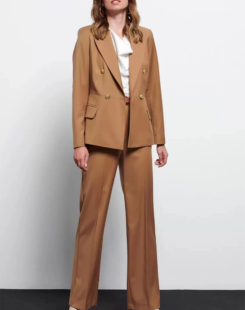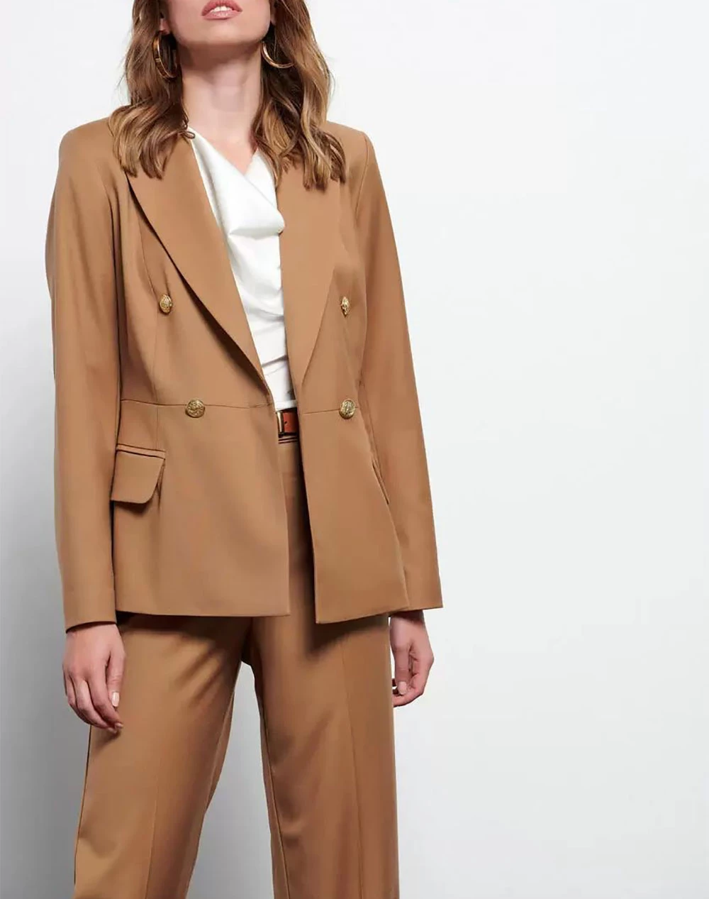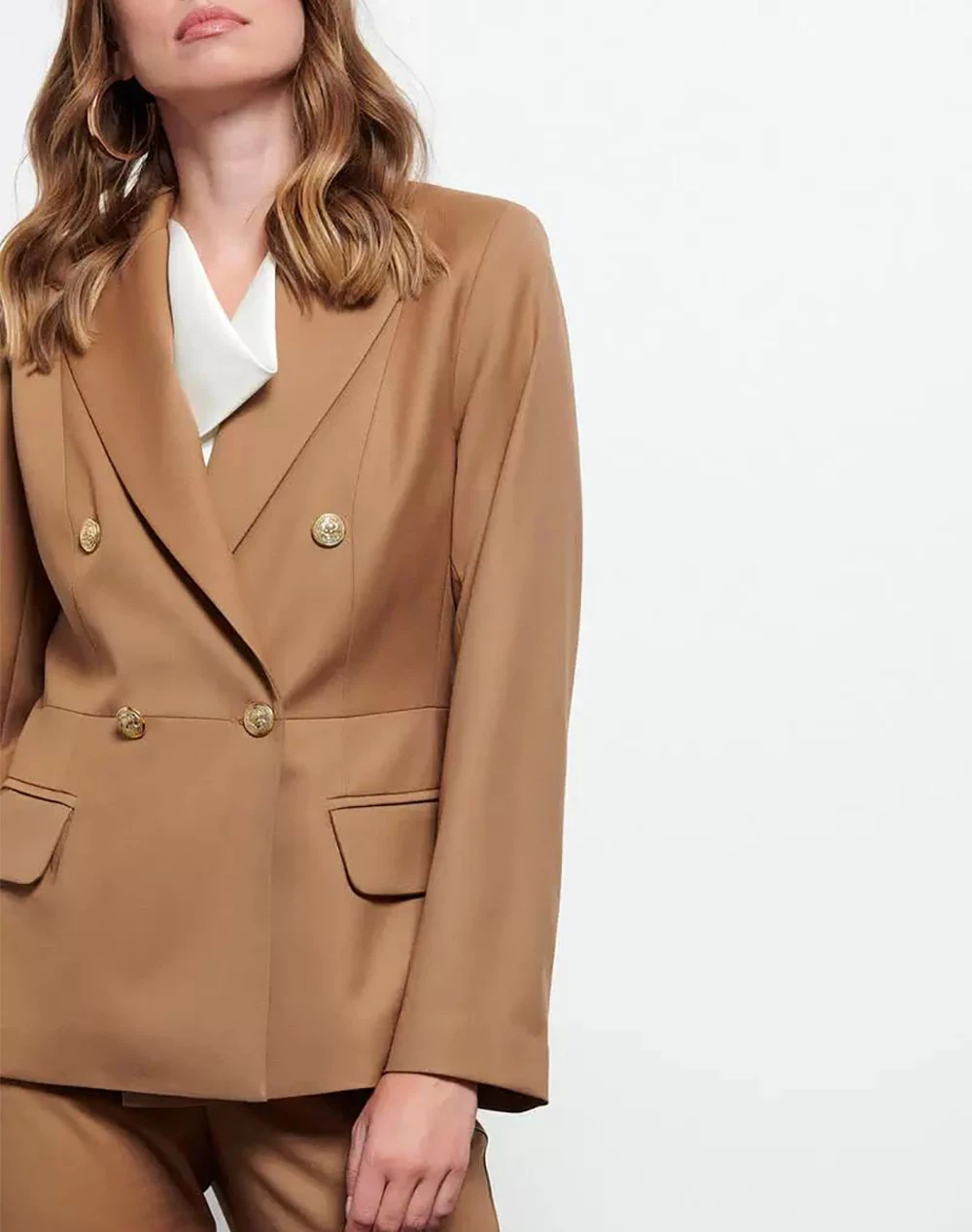 Σακάκι γυναικείο σταυρωτό με πέτο γιακά, μεταλλικά κουμπιά και κανονική γραμμή. Μπροστινές τσέπες με καπάκι. (Σύνθεση: 62% Πολυεστέρας, 35% Ρεγιόν, 3% spandex)