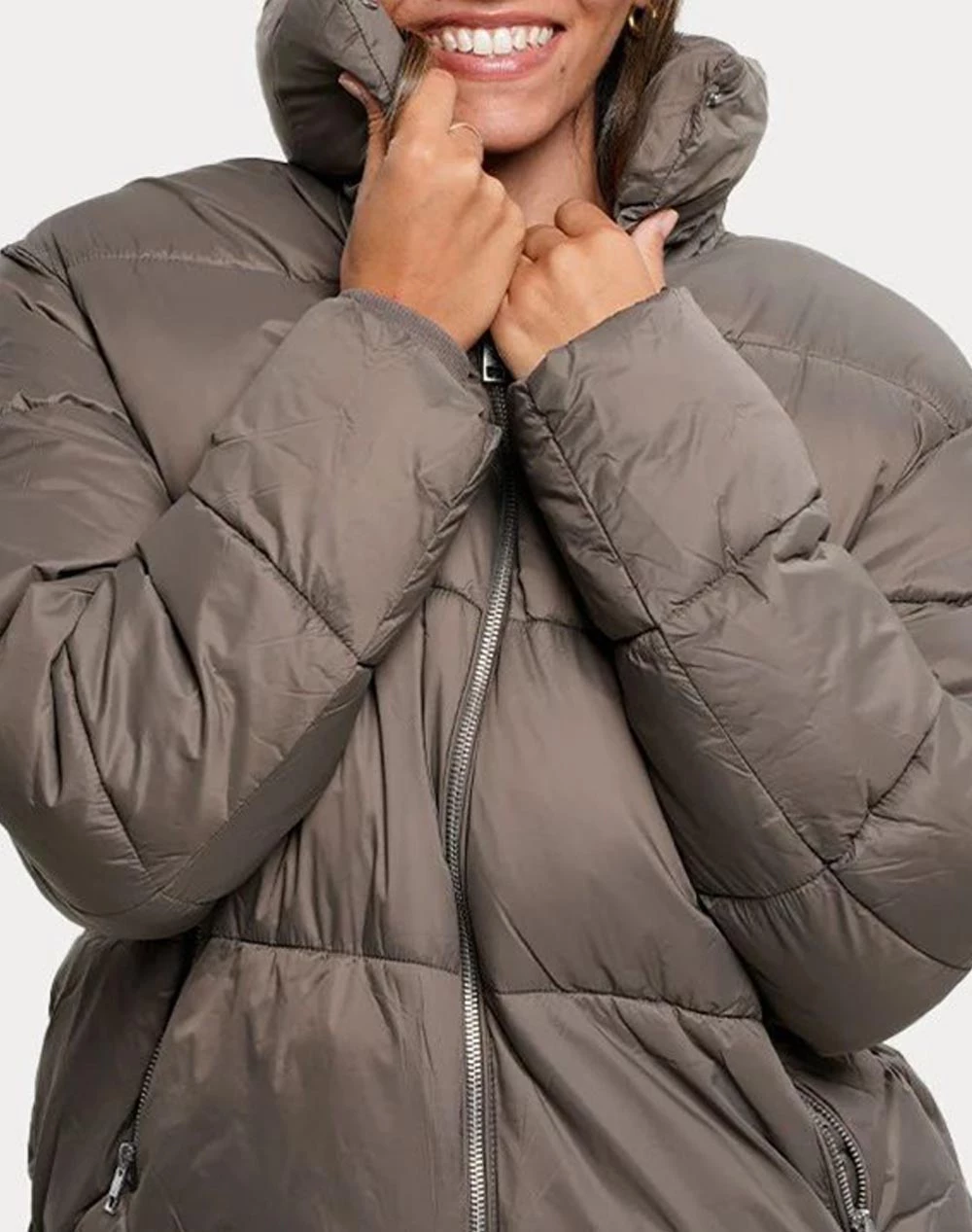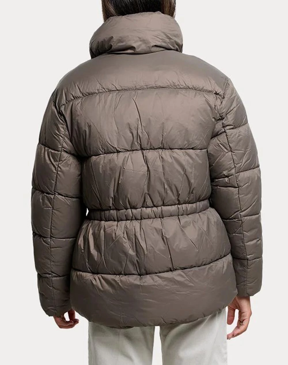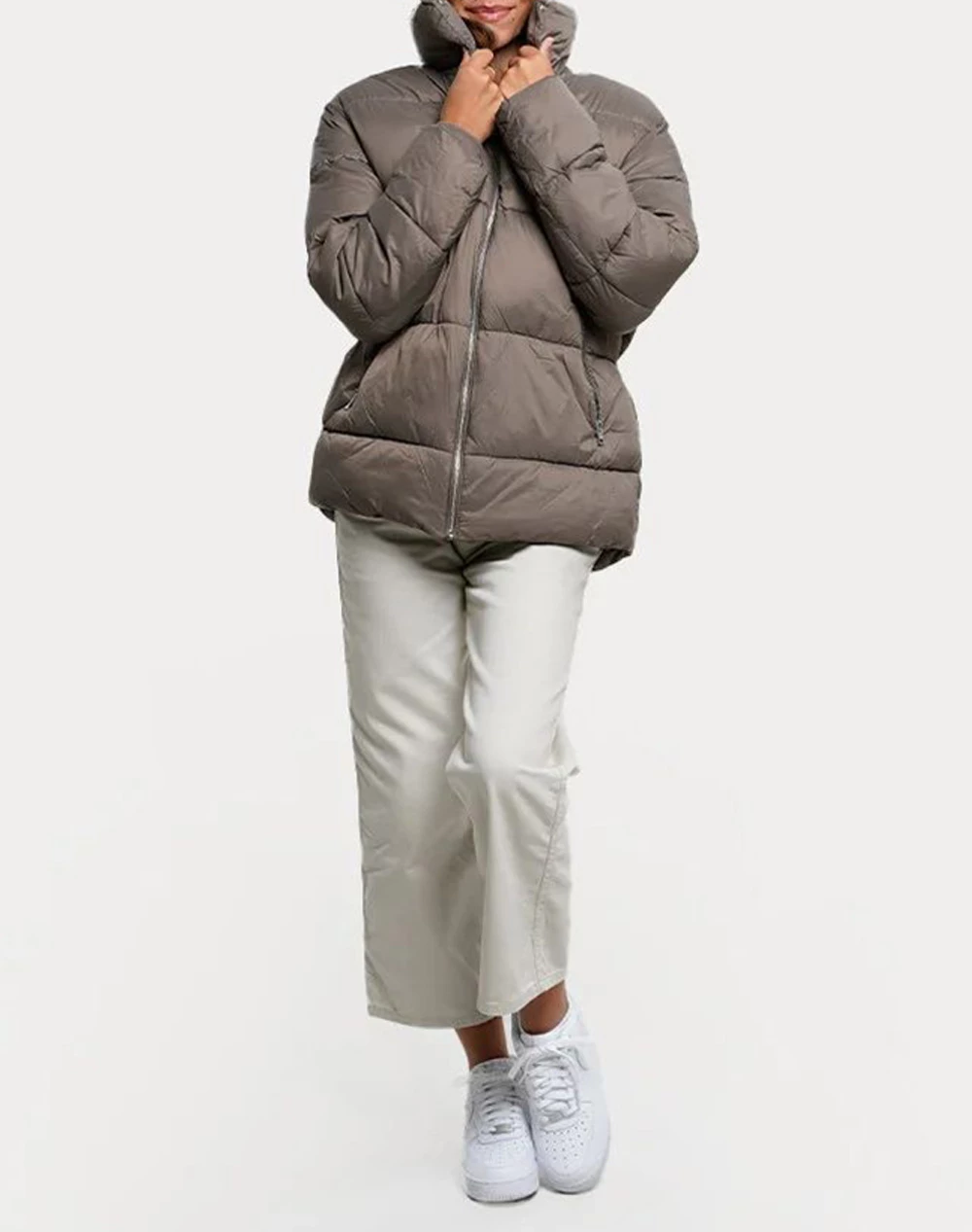 Γυναικείο μπουφάν τύπου puffer, σε κανονική γραμμή, με τσέπες στο πλάι, ψηλό λαιμό και κλείσιμο με φερμουάρ. ( Σύνθεση: 100% Πολυεστέρας )
