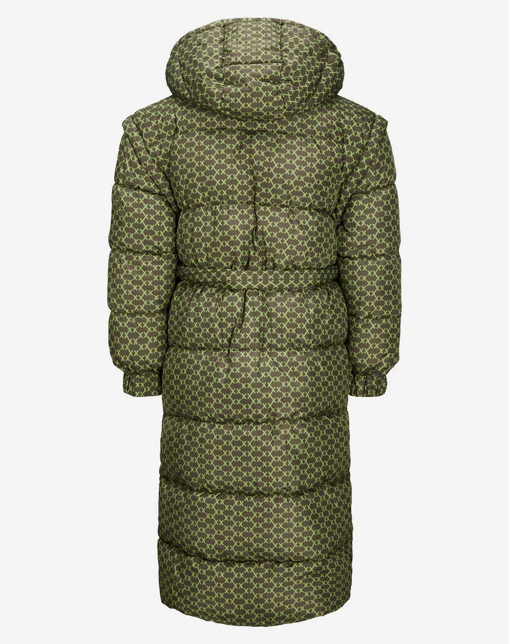Γυναικείο μακρύ μπουφάν τύπου puffer, με κουκούλα, τσέπες στο πλάι και κλείσιμο με φερμουάρ και ζώνη στη μέση. ( Σύνθεση: 100% Πολυεστέρας )