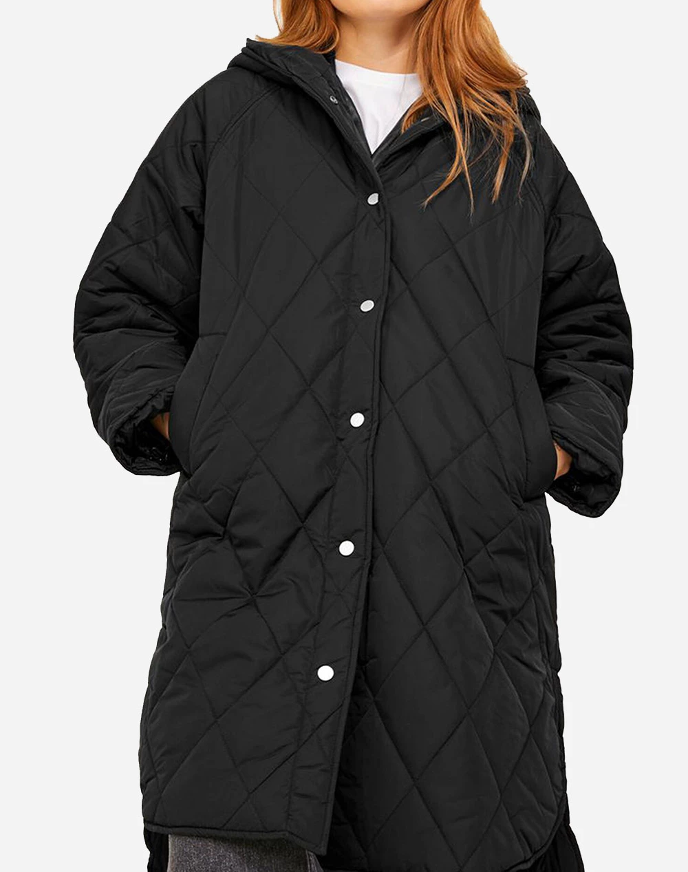 Γυναικείο μπουφάν παρκά σε κανονική γραμμή, με κουκούλα, τσέπες στο πλάι και κλείσιμο με κουμπιά. ( Σύνθεση: 100% Πολυεστέρας )