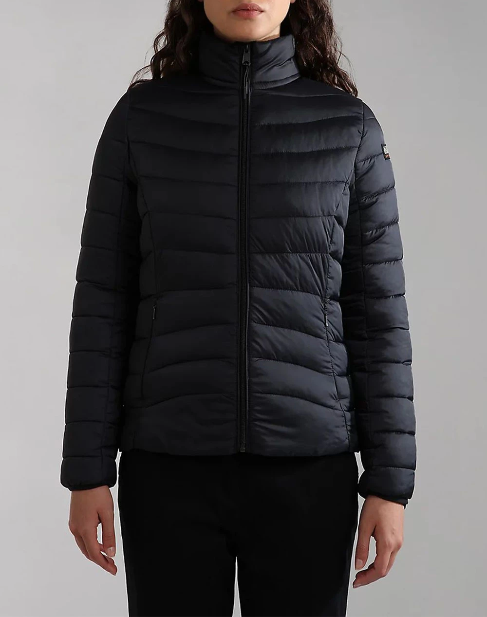 Γυναικείο μπουφάν τύπου puffer, με καπιτονέ όψη, ψηλό λαιμό, πλαινές τσέπες με φερμουάρ και κλείσιμο με φερμουάρ κατά μήκος. ( Σύνθεση: 100% Πολυαμίδιο. )