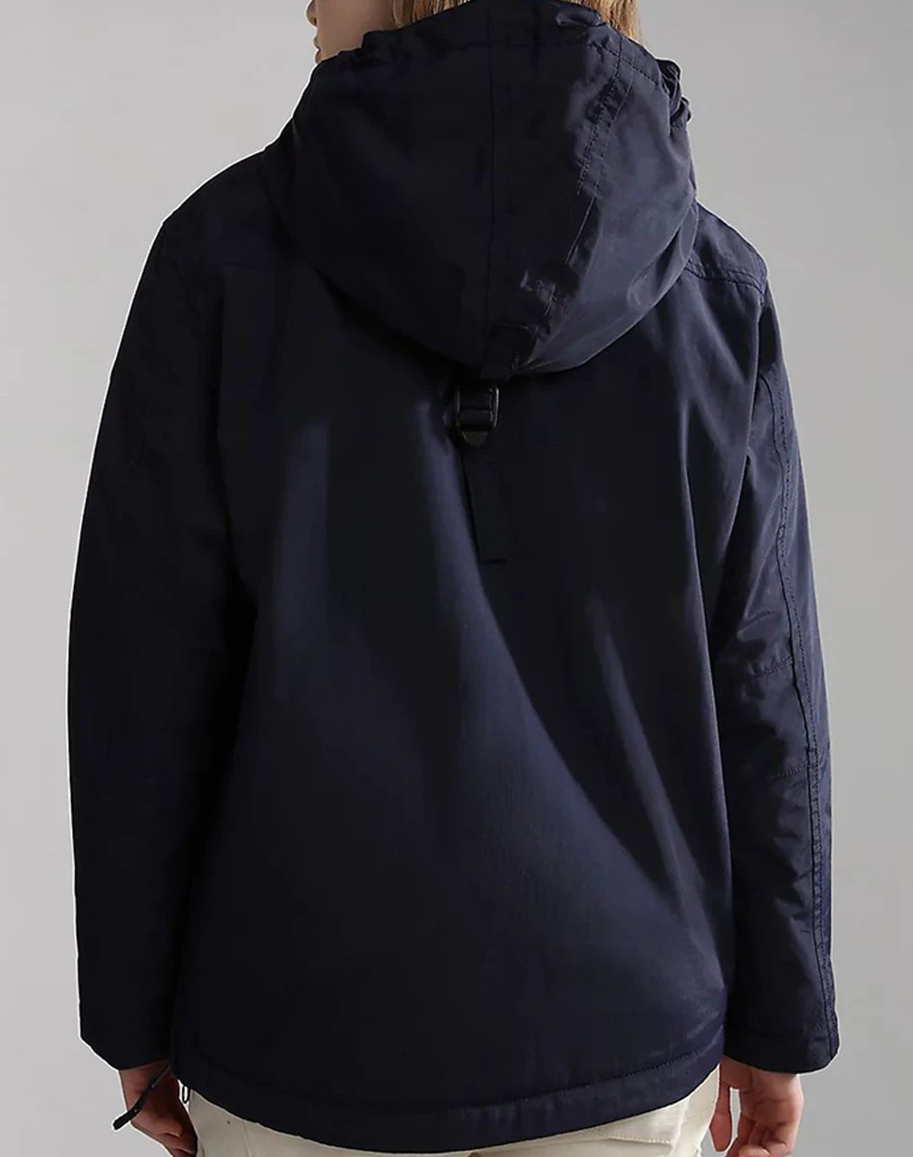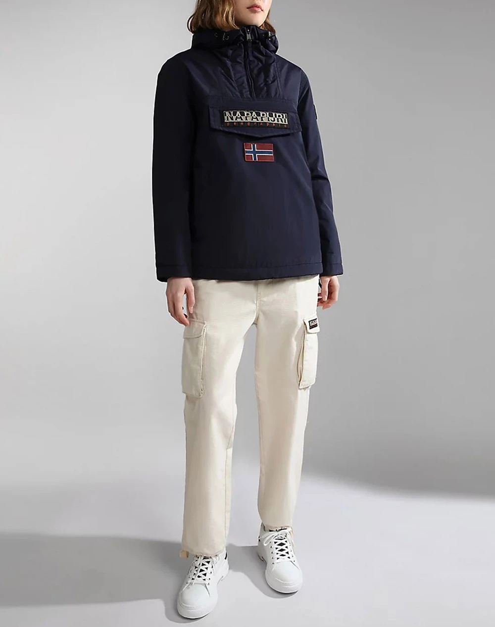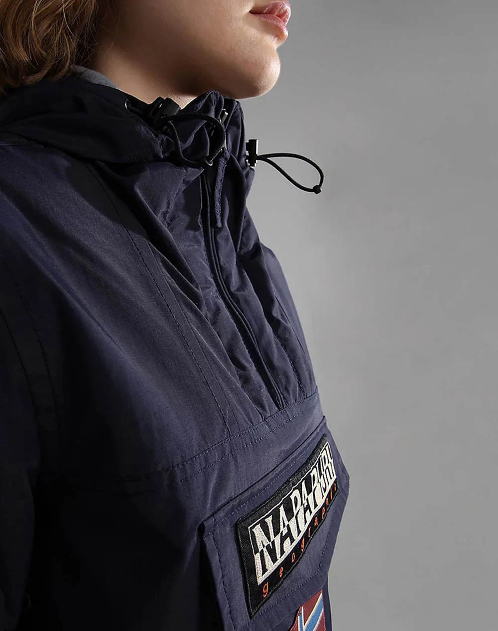Γυναικείο αντιανεμικό μπουφάν, με ρυθμιζόμενη κουκούλα, πλαϊνες και μπροστινή τσέπη με το λογότυπο, εσωτερική επένδυση και κλείσιμο με φερμουάρ στο πλάι. ( Σύνθεση: 100% Πολυαμίδιο. )
