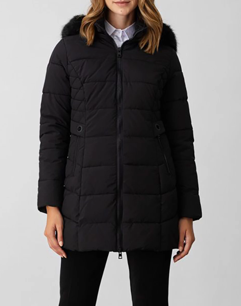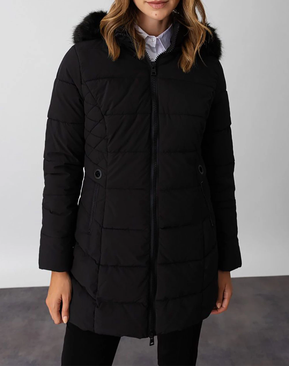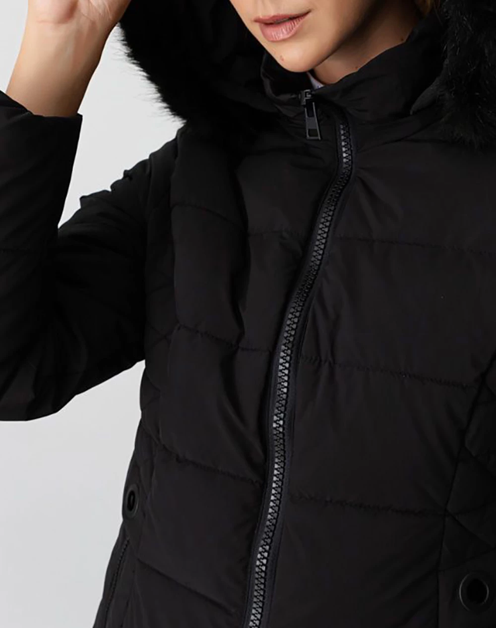 Μπουφάν μονόχρωμο τύπου Puffer, με αποσπώμενη κουκούλα, τσέπες και κλείσιμο με φερμουάρ μπροστά. Είναι φοδραρισμένο. (Σύνθεση: 100% Πολυεστέρας)