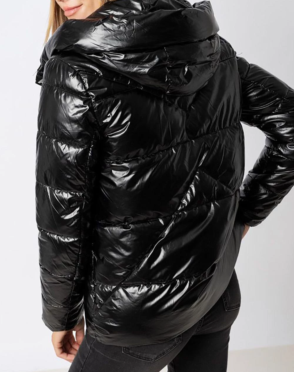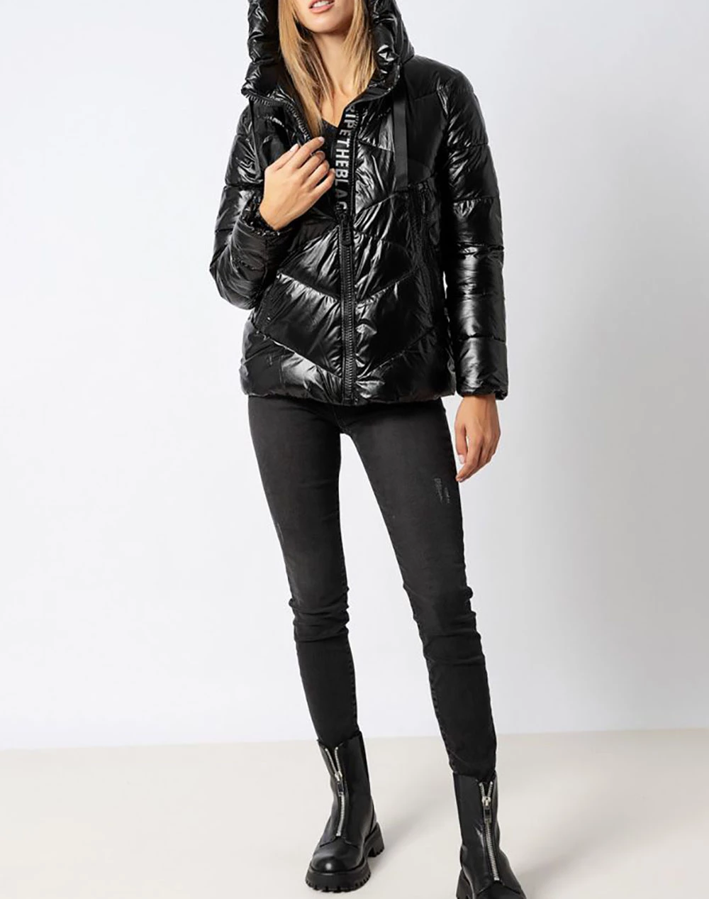 Μπουφάν τύπου Puffer, αδιάβροχο, με μεταλιζέ απόχρωση. Διαθέτει ρυθμιζόμενη κουκούλα και κλείνει με φεερμουάρ μπροστά. (Σύνθεση: 100% Πολυεστέρας)